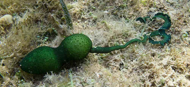 It is a marine worm of the annelid group, with a wide geographical distribution. Generally we will not observe the animal completely, but usually only the trunk is visible, which we will see coming out of the rocks or small cavities, reaching the meter and a half long and ending in a wavy bifurcation. The rest of the body is made up of a cylindrical section, which is usually kept inside the rocky cavity at all times. Whenever we see a Bonellia viridis, it is a female, which is characterized by its green to black coloring. Its body is circular, although due to its enormous contractility, we will mostly observe it extended. It feeds mainly on detritus, although using a poison located in its skin, it is capable of paralyzing small invertebrates. There are scientific studies that have successfully tested the anti-tumor properties of this poison, known as bonelina.