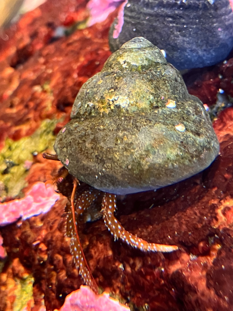 Pagurus granosimanus, commonly known as the granular hermit crab, is a species of decapod crustaceans in the family Paguridae, widely distributed along the northeastern Pacific coast, from the Aleutian Islands in Alaska to Bahía de Todos Santos in Baja California, Mexico. The genus name Pagurus comes from the Greek ‘pagouros‘, meaning ‘tail-bearer‘, referring to the soft, coiled tail typical of hermit crabs. The specific epithet granosimanus refers to the granular or rough texture of its chelipeds. This species inhabits lower intertidal zones and depths down to 36 meters, commonly found on rocky bottoms, among pebbles, or within algae, where it shelters inside empty mollusc shells.
