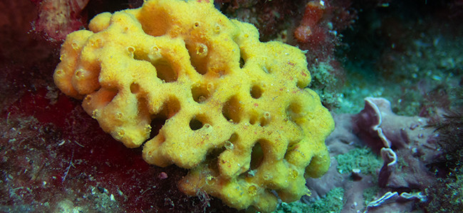 Axinella damicornis is a species of sponge belonging to the class Demospongiae, within the phylum Porifera. The genus name ‘Axinella‘ comes from the Greek ‘axine‘ meaning axe, referring to the shape of some structures of these sponges, while ‘damicornis‘ is derived from Latin and alludes to its ‘horn-like branching‘ form, as its appearance resembles branched coral or deer antlers. It is commonly known as the ‘horn sponge‘ due to this characteristic shape. Axinella damicornis is widely distributed in the Mediterranean Sea and the northeastern Atlantic Ocean, primarily inhabiting rocky areas and underwater walls between 10 and 50 meters deep. It prefers zones with moderate to strong currents that provide nutrients, allowing it to carry out its filter-feeding.