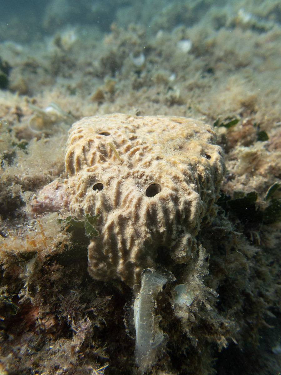 The sponge Sarcotragus fasciculatus belongs to the class Demospongiae, order Dictyoceratida and family Irciniidae. It inhabits the coasts of the eastern Atlantic Ocean and the entire Mediterranean Sea, from shallow waters to 40 meters deep. It prefers hard bottoms in illuminated areas, although not in direct light.