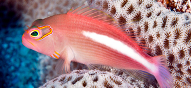 It is a carnivorous fish with opportunistic feeding habits. Its diet mainly consists of shrimps, small fish, crabs, and other crustaceans. Thanks to its territorial behavior and ability to remain motionless on coral branches, it strategically positions itself to ambush prey. This behavior has earned it the nickname ‘hawkfish’, due to its resemblance to the way a hawk watches and attacks from above.