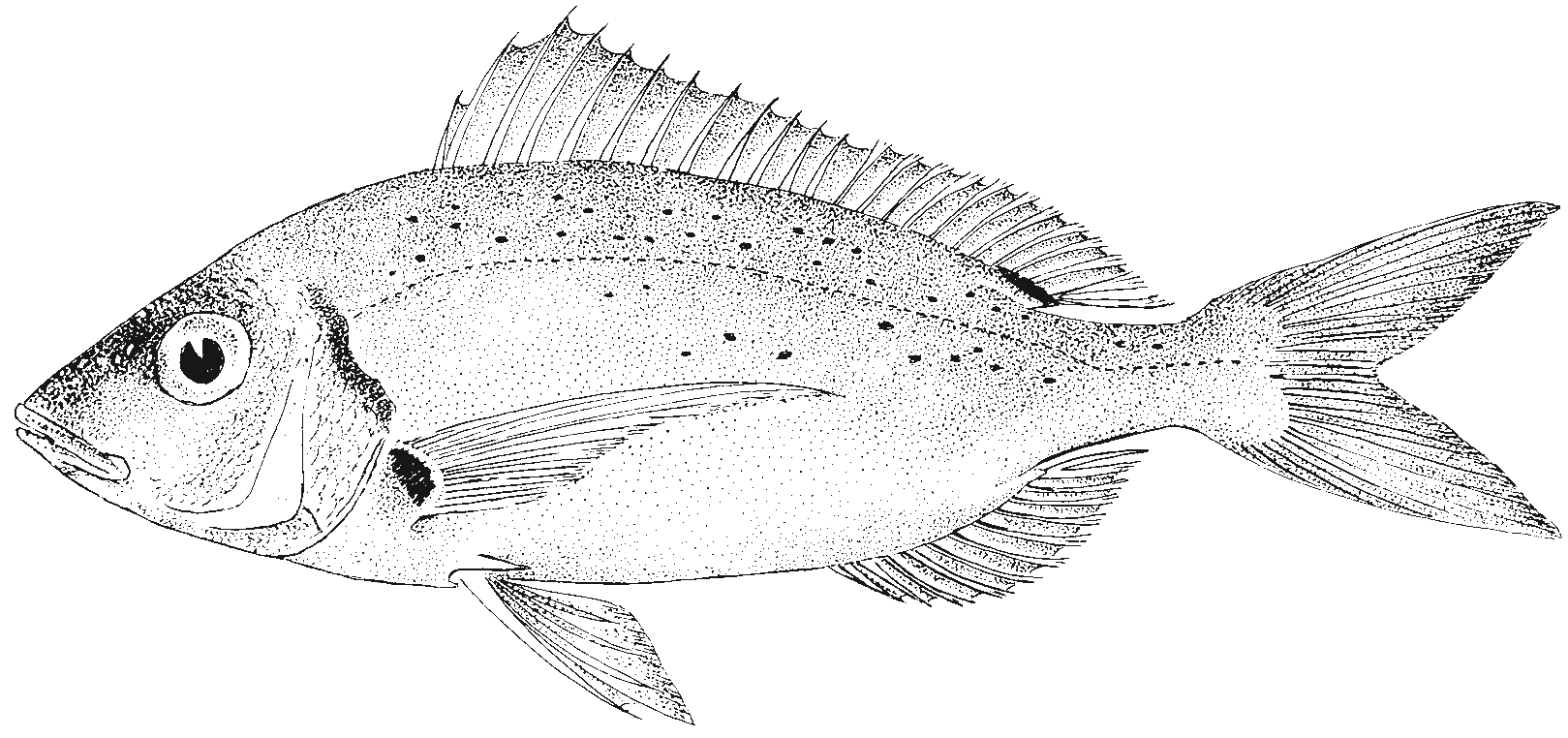 Pagellus erythrinus has an oval and laterally compressed body, averaging between 15 and 25 cm in length, although some individuals can reach up to 60 cm. Its coloration varies from pink to reddish on the back, becoming more silvery on the sides and belly. A distinctive feature of this species is a dark spot behind the head, more visible in juveniles. The dorsal fin is long, with a spiny section followed by soft rays, while the pectoral fins are long and pointed. Compared to other species in its genus, such as Pagellus acarne (axillary sea bream), Pagellus erythrinus is distinguished by its larger size and more intense pink coloration.