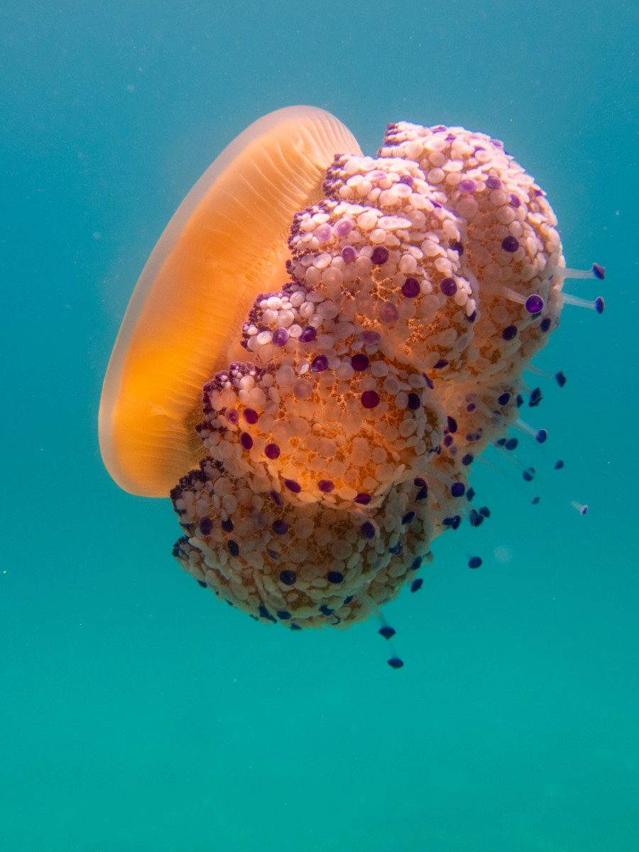 Cotylorhiza tuberculata es una especie de medusa (Scyphozoa) perteneciente a la familia Cepheidae. Se trata de una especie endémica del Mar Mediterráneo que generalmente encontraremos en aguas superficiales, sobre todo durante los meses de Julio a Noviembre.