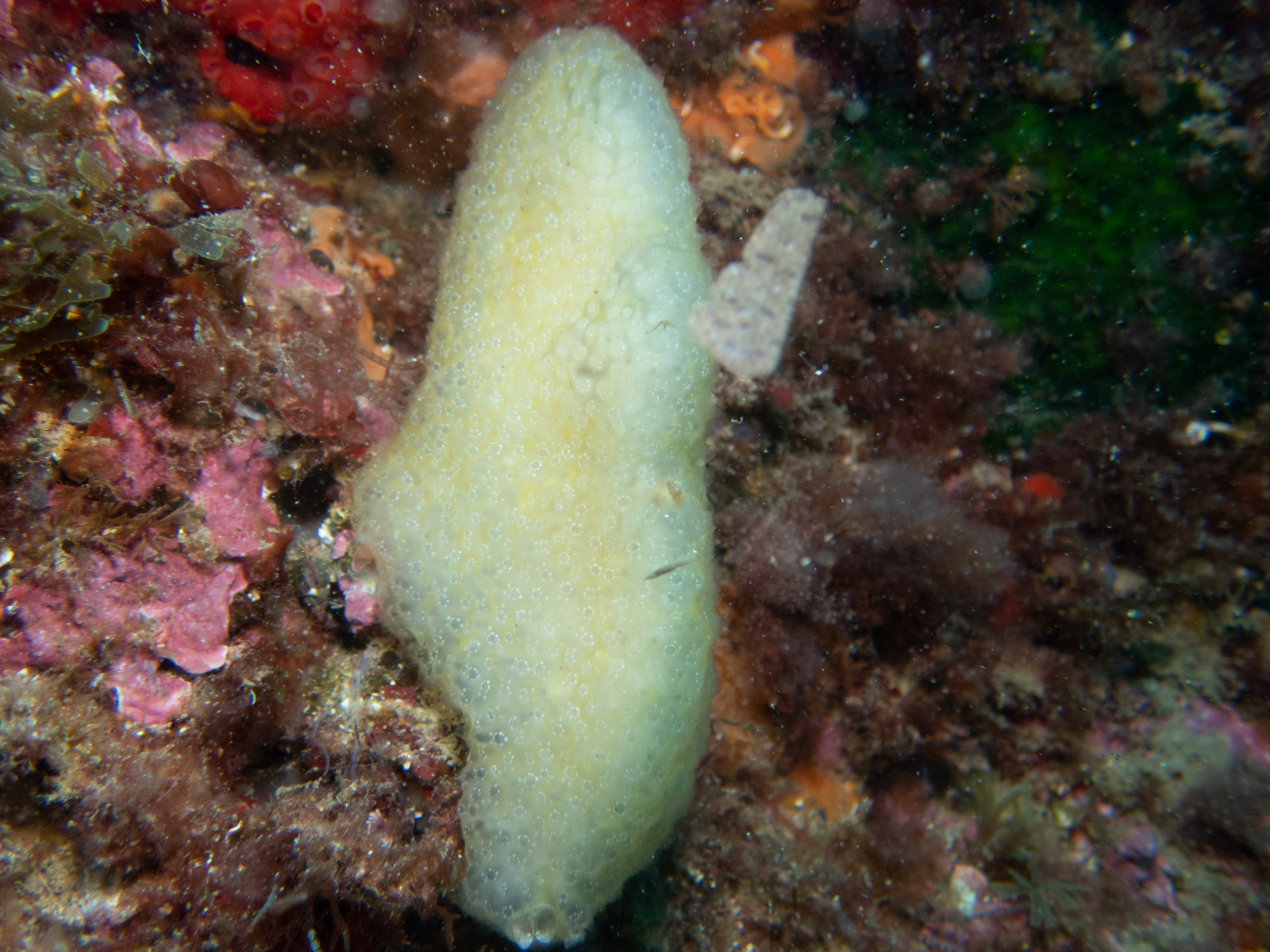 Pseudodistoma obscurum es una ascidia colonial perteneciente al orden Enterogona y a la familia Polyclinidae, dentro del subfilo Tunicata, del filo Chordata. El nombre del género, Pseudodistoma, hace referencia a su parecido con otros géneros del mismo grupo, mientras que el epíteto ‘obscurum‘ alude a la tonalidad oscura que adoptan algunas de sus formas coloniales. Esta especie es endémica del mar Mediterráneo, y se encuentra principalmente en su parte occidental, incluyendo el mar de Alborán y el estrecho de Gibraltar. Habita fondos rocosos entre los 5 y los 35 metros de profundidad, tanto en zonas expuestas con fuerte hidrodinamismo como en ambientes más tranquilos y zonas coralígenas.