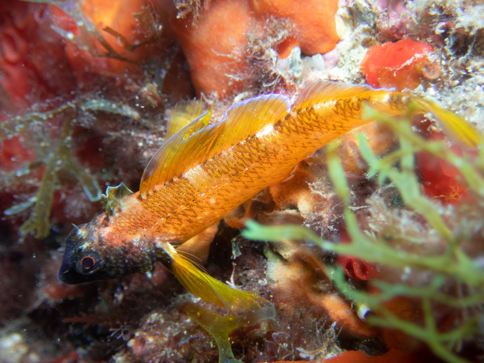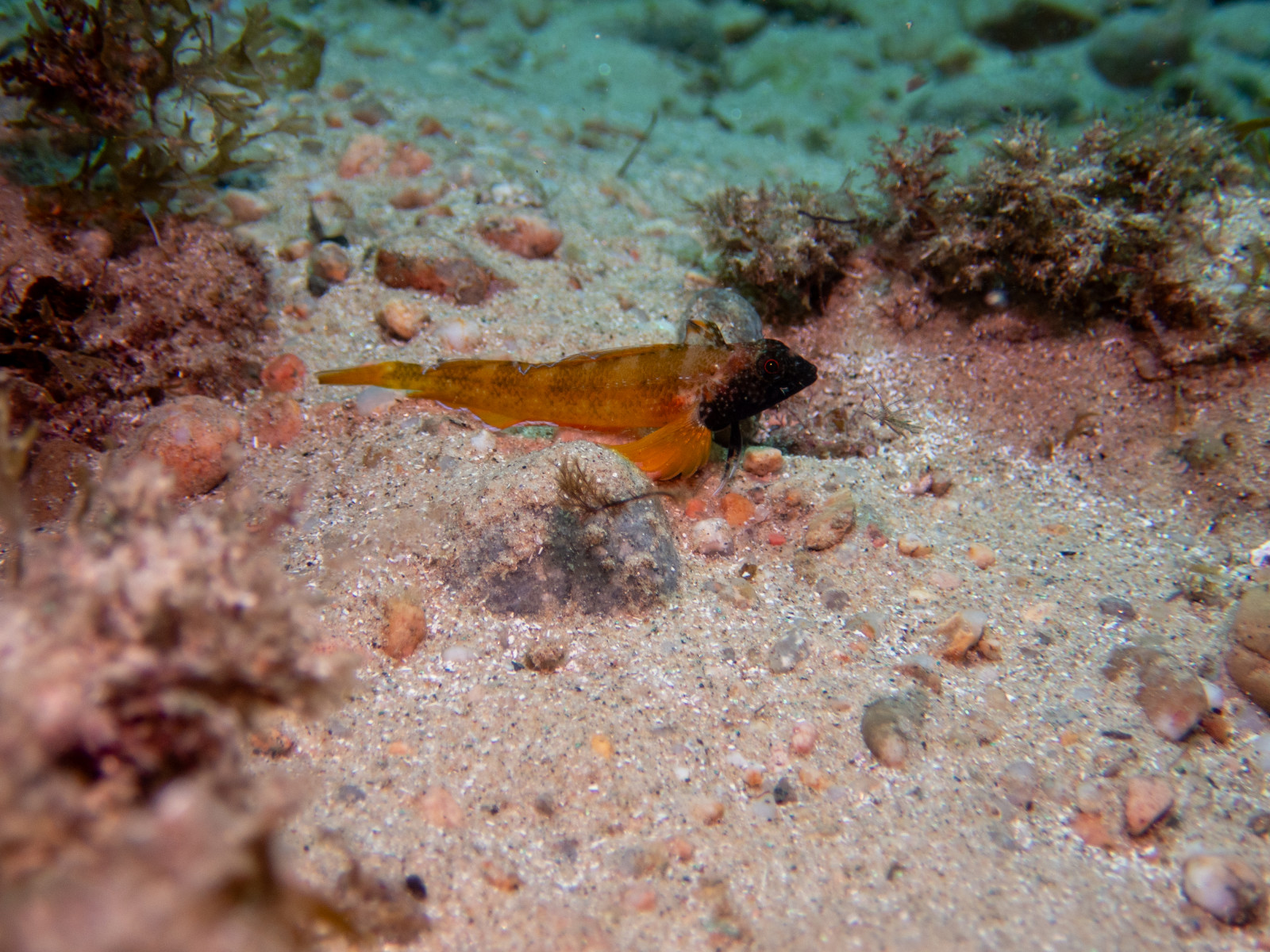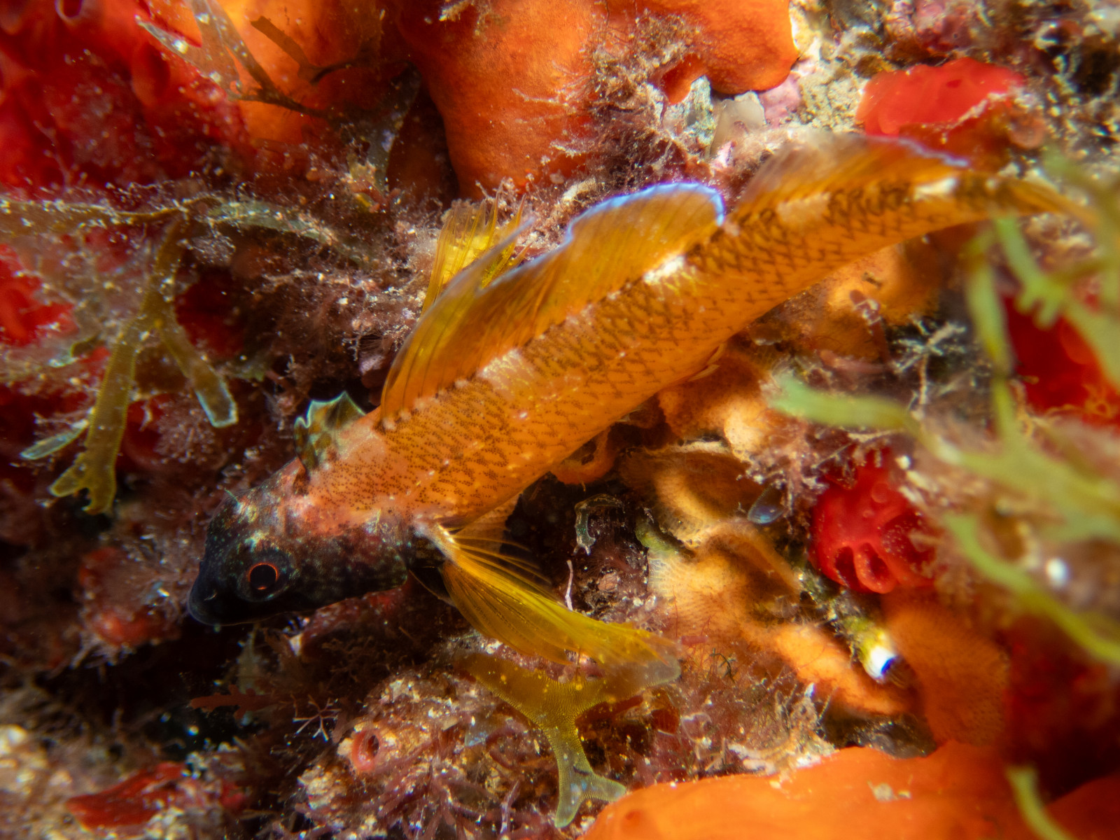 - Tripterygion melanurum minor. Los radios de la segunda aleta dorsal decrecen en altura de forma paulatina. Ausencia de mancha negra en la parte superior dorsal del pedúnculo caudal. Color rojizo.